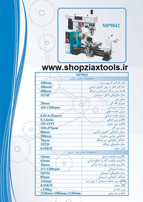 مشخصات کلی دستگاه تراش ، فرز و دریل چند کاره مدل MP5042 :