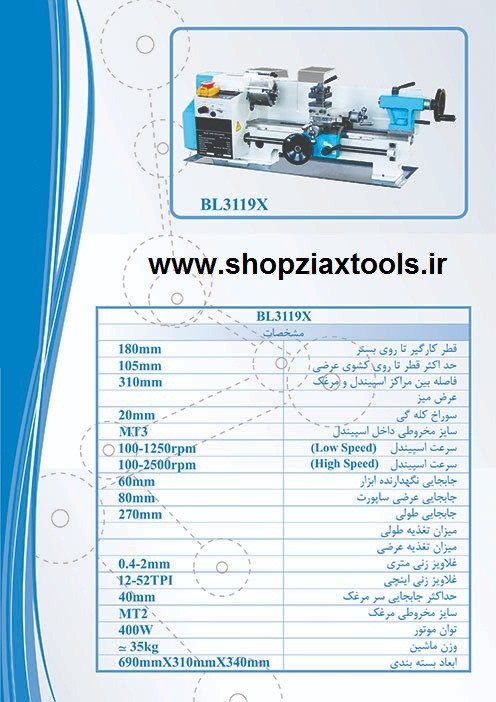 مشخصات کلی دستگاه تراش رومیزی و کوچک BL3119X :