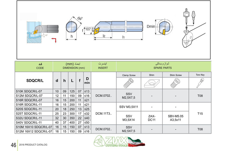 هلدرداخل تراش DCMT 11 خور با قطر 16 با کد SDUCR مناسب برای داخل تراشی قطر 0 تا 15 و در نوع پیچ از رو می باشند.